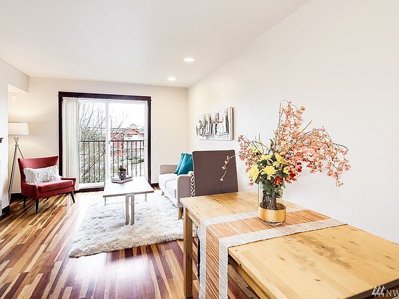 Lovely townhouse nestled behind a brick tudor with territorial views & NO HOA dues. The living area is warm and inviting perfect for entertaining or relaxing by the gas fire place. Designer stone backsplash & slab granite counter tops in the kitchen w/beautiful cabinetry, custom millwork & fresh paint throughout. Partially fenced yard & patio nice for pets & BBQ's. 1 off street parking space. Great location-close to Morgan Junction's hip shops & dining. Easy access to WS Bridge & SeaTac Airport.
