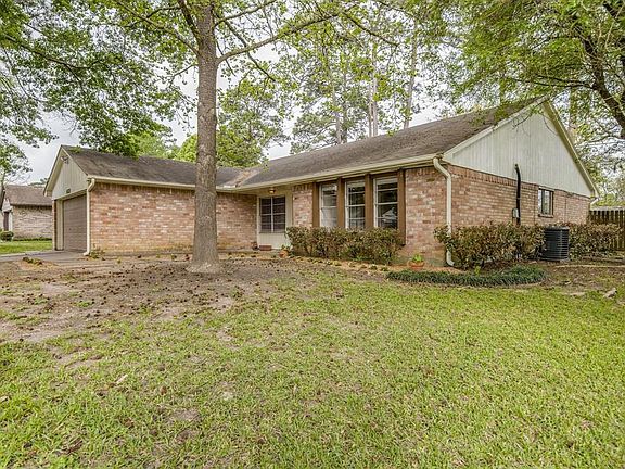 Wow a 4 bedroom 1 story home in Spring!. This home sits on a large corner lot with a covered back patio. 2019 new A/C and Ductwork! Split floor plan with rooms on both sides of the home. Large family den with wood burning fireplace. Master bedroom is large with walk-in closet. New tile wall in both bathrooms. No carpet in home, perfect for those with allergies. Fridge stays with the home. Breakfast area in the kitchen. Hurry before this one is gone.