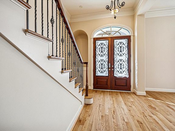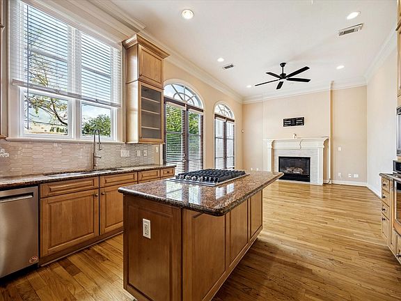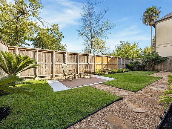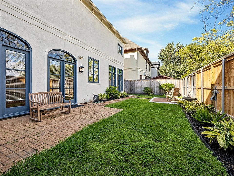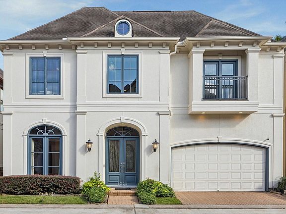 Timeless French elegance meets modern livability in this impeccably maintained home in a secure gated enclave minutes from the Medical Center, Rice Village, and Museum District. Arched windows and French doors bathe the interior, highlighting hardwoods, fine millwork, and soaring ceilings. The open layout centers on a chef's kitchen with granite, stainless appliances, gas cooktop, and a generous island overlooking the fireside living room and private garden. Upstairs, the serene primary suite offers a vaulted ceiling, spa bath with dual vanities, soaking tub, and an expansive walk-in closet. Two secondary suites have en-suite baths, and a third-floor retreat with full bath functions as a guest suite, media room, or office. Additional highlights: extra driveway parking, an oversized two-car garage, fresh interiors, and low-maintenance landscaping refined Houston living.
