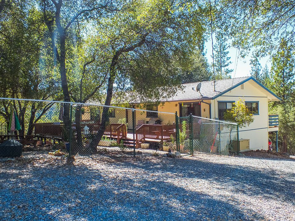 12.8 acres in Mountain Ranch Ca - California Gold Country. Main house is 2/2 with tile flooring, wood burning stove, huge laundry, spacious kitchen (1344sqft). The garage and basement are an additional 1344 sqft. Studio apartment above woodworking shop/2nd garage (1392 sqft). Studio has tile flooring, bathroom and kitchenette. Air conditioning and heating. Generator is hardwired to main house. Well is 560 feet deep with new pump. House was re-roofed in 2013.
