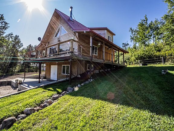 Embrace the Alberta ranch lifestyle on 33.83 acres of rolling pasture with sweeping valley views. Built in 2015, this hillside walkout home welcomes you with open-concept living, highlighted by a wood stove for cozy winter evenings. The loft-level primary suite offers a walk-in closet and a 3-piece ensuite with tub, while the walkout basement provides additional living space, including an office ideal for a home-based business. The property is thoughtfully set up for equestrian and hobby farm pursuits, featuring fencing, corrals, a riding arena, and round pen. Outbuildings include a 20x30 quonset, a 14x20 insulated tack shed, and a tarp shed for multipurpose storage. With a chicken coop, pig pens, and corrals with loading chute, this acreage is ready for those seeking a versatile rural setup designed with both livestock and horses in mind.