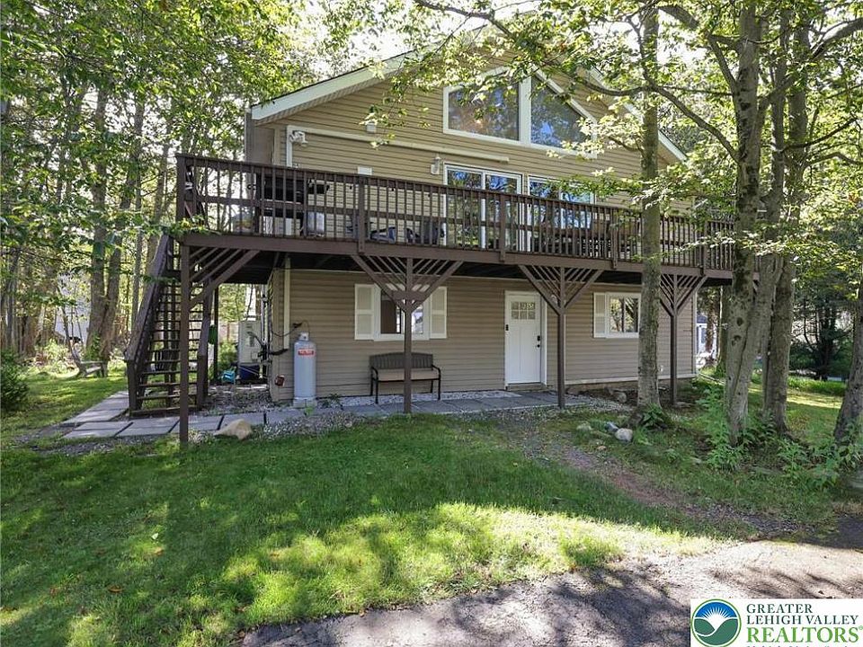 **Short term rental Friendly** Lots of Light and Updated! Escape to this charming 3-bedroom, 2-bath Chalet tucked away in the heart of the Poconos! The open-concept main level welcomes you with an updated kitchen featuring New Mini-Split Systems, stainless steel appliances, high ceilings, and a cozy brick fireplace-perfect for relaxing after a day of mountain adventures. Two comfortable bedrooms are located on the main floor, while the lower level offers a spacious family room, an additional bedroom, bath, and a bonus office area-great for guests or working from your mountain getaway. The airy loft adds extra space for reading, games, or quiet retreats. Nestled in the amenity-filled Community, where you can enjoy lakes, pools, beaches, and year-round recreation. Come see the perfect blend of comfort and mountain charm. Schedule your showing today!