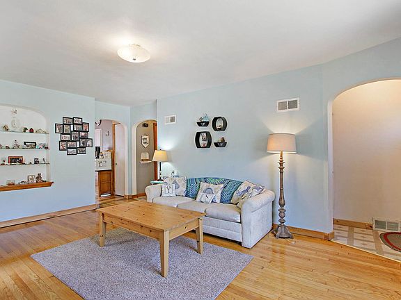Have you always wanted to live close to the Lake? Look no further than this cute and charming 2-bedroom ranch home near the lake with classic arches and built-in shelving. Bright and spacious living room for entertaining. Beautiful wood flooring throughout. Super cute kitchen featuring open cabinetry. Nice sized bedrooms. Partially finished basement for additional storage, Rec room and an additional Lower level bonus room that can be used as office space, den, or additional storage. Enjoy privacy in your spacious and fenced in back yard. Close to bike trails, nearby Park and downtown shopping and the Harbor Market. Super low Taxes!! Security System included. Extra parking space behind garage.