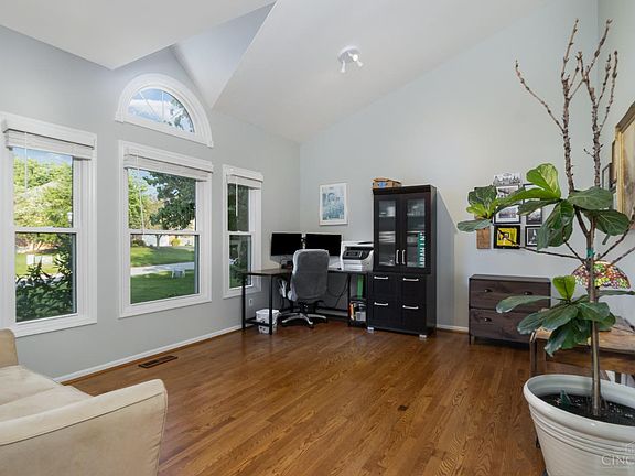 True 6-bedroom home in a popular pool/tennis community! Awesome transitional featuring formal living/dining rooms, granite/stainless eat-in kitchen with center island + tile backsplash, great room with soaring ceilings + gas fireplace, study/bedroom on 1st floor, vaulted primary suite with walk-in closet + attached bath including convenient laundry hookups, and finished lower level offering rec space, additional egress bedroom, and remodeled full bath. Gleaming hardwoods throughout 1st floor. New hardie plank siding on exterior. Plus a 2-car garage and rear deck/patio with pergola overlooking an oversized fenced yard. All conveniently located minutes from shopping/dining/expressways!