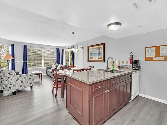 Updated 2 bedroom/2 bathroom second floor (elevator) corner unit Condo-Hotel on International Drive: 1 mile to Sea World, 5.6 miles to Disney World and 6.2 miles to Universal Studios. You'll enjoy the bright and sunny open floor living space, with kitchen, dining and private balcony. Condo is ideal for seasonal stays or as an investment property. Unit includes: engineered wood floors throughout entire unit, fully equipped kitchen with refrigerator/ice maker, cooktop, dishwasher, microwave, master bedroom with king bed, TV, full bathroom, second bedroom with two full size beds, tv, and full bathroom. The resort-style community offers top-notch amenities including a heated pool, jacuzzi, playground, fitness center, restaurant, bar, convenience store, dining hall, and laundry facilities.