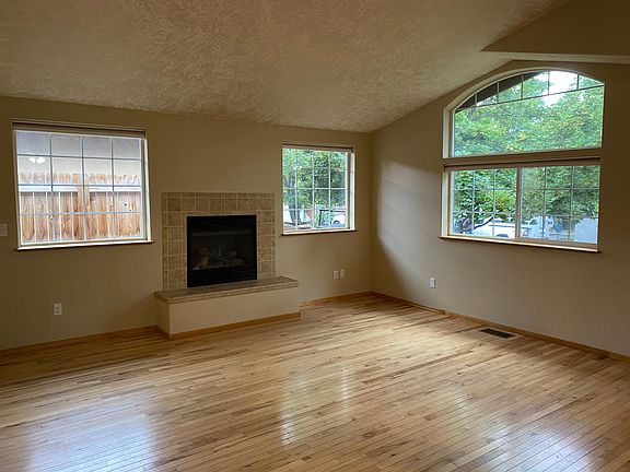 Spacious single level home with a light and bright open floor plan- a must see! Situated on a corner lot, at the end of a tree lined street, this home features a cozy gas fireplace, sky lights, vaulted ceilings, hardwood floors throughout with carpet in bedrooms. Fully equipped Kitchen with stainless steel appliances, under cabinet lighting, gas range and granite countertops. Primary bedroom suite boasts vaulted ceilings, patio doors, walk-in closet and dual vanity. Attached double car garage, plus a single car garage that has been separately partitioned in order to create flexible space; use as a workshop, office, gym, the options are endless! Pets considered.