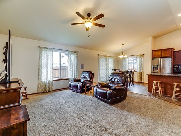 Better than new, open concept rambler in quiet neighborhood close to I-5 for easy commuting and short walk to restaurants and coffee. This home has all the upgrades: vaulted ceiling, stainless appliances, granite counter tops throughout, heat pump, oil bronze finishes, ceiling fan, covered back porch with added steps all around, fully fenced yard with added dog run or small RV parking on the side.