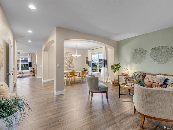 Welcome home to this stunning 5 bedroom, 5 bath, FOUR-CAR GARAGE beauty right next to park and pool! This home has it all! Inviting front porch, brand new exterior paint, plus the mature landscaped yard immediately invite you in. Foyer is a grand two-story entry opening to living and dining area with huge windows and lots of sunlight! Family room has a gorgeous fireplace and beautiful views to the yard, park and mountains! Kitchen has tons of cabinetry for storage, granite countertops, stainless steel appliances, roomy island and eat in breakfast nook that creates an amazing entertainment space for everyone. Gorgeous mountain views everywhere with the park and pool right across the street! Backyard has a patio area, mature trees and a trail behind, so no direct neighbors backing to the property. Upstairs is a massive primary retreat with vaulted ceilings, lots of windows, a full bar area, huge closets and large light and bright 5-piece master bath with two separate sinks and vanity area. Three other large bedrooms upstairs offer oversized closets and an ensuite bath for one and Jack and Jill bath for the other! Head downstairs to the newly finished basement with a large rec room with beautiful custom lighting, fireplace, cabinetry and plenty of room to play! An additional bedroom and gorgeous 3/4 bath are great for private guest accommodations! This home has two HVAC systems so you're always cool in the summer and warm in the winter! Roof is only 2 years old. This property is just a couple minutes off of I-25, so easy commute to Denver or Ft. Collins and easy commute to Boulder as it's right on 52! This property has it all, so hurry and take a look!