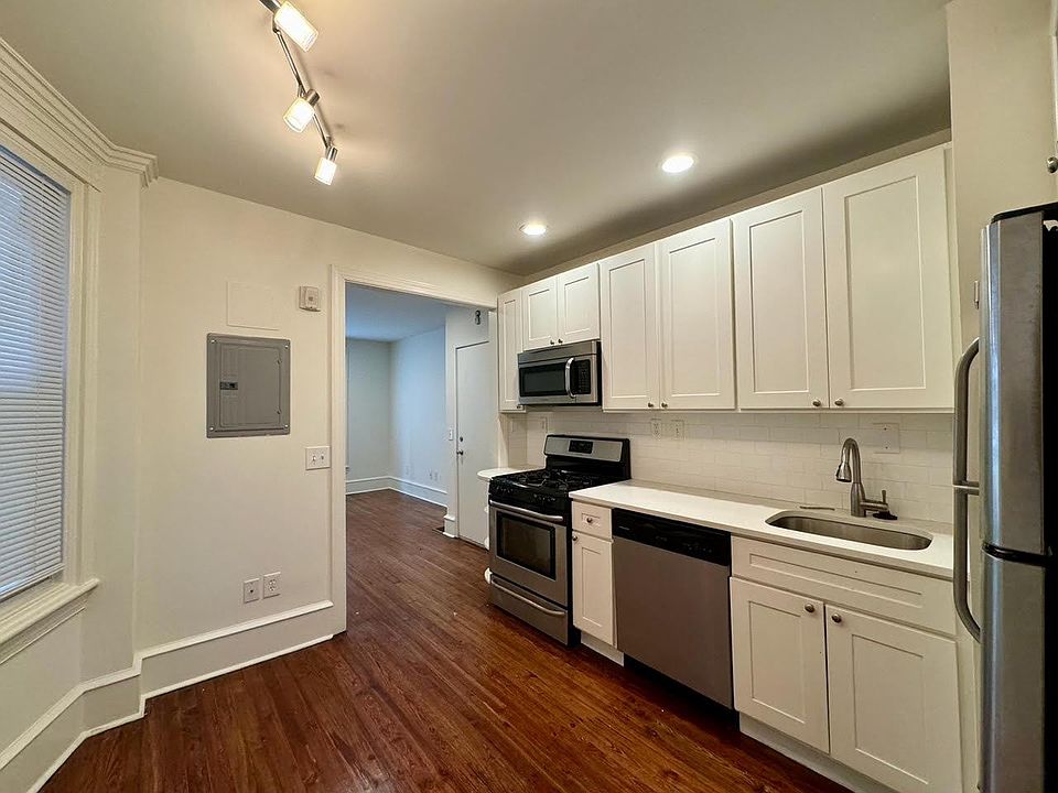 Entire first floor available in a well-maintained triplex on a quiet residential street. This bright and inviting unit features hardwood floors throughout, large windows with abundant natural light, and access to a shared backyard.
