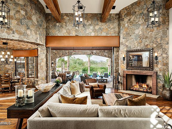 Rare opportunity in Paradise Valley. This immaculate single level estate by Calvis Wyant Luxury Homes is one not to be missed. Upon arrival through the front gate, the sense of privacy and security is evident, and the welcoming front courtyard entry with charming fireplace sitting area sets the stage for what's to come. The home flows seamlessly from the open great room floorplan with automatic pocket doors to the spacious outdoor living areas, while the recently updated pool/spa and lush desert landscaping and private walking path on the 1.31 acre property is reminiscent of the Desert Botanical Gardens. Features include a well appointed and spacious kitchen, multiple eating areas, custom bar and game room for entertaining, temperature controlled wine room, large primary suite, three en-suite bedrooms (including a separate guest casita), private office (or fifth bedroom), exercise room, expansive pantry and laundry/utility room, and an oversized 5+ car garage with abundant space and storage. This home is the embodiment of the Arizona lifestyle that is in such high demand. Do not miss out!