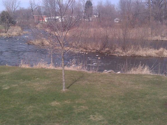 Approx. 90' of river frontage on West Twin River below the damm so possible excess to Lake Michigan. Fish, boat, ice skate, snow mobile (all from your back yard). Part of garage has basement with furnace that heats garage and opening with access to garage. Interior needs updating. Newer items are: carpet, patio door, basement door, dishwasher, bathroom floor, roof, holding tanks, A C, garage furnace and insulation and 12 x 12 lawn shed. Deck overlooking back yard and river. Wood burning fireplace in basemet. Materials are there for 2nd bath.
