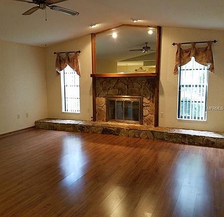 This move in ready home home has it all: Large oversized (1.26 acres) huge pie shaped lot with plenty of room to park your RV and boat. See aerial photo. Screened in pool with only two year old Hayward pool pump and a lanai big enough for two sets of patio furniture. Never pay a water bill with this 160 foot deep well. Gas fireplace in the family room with stone hearth next to kitchen with a roomy eat in area overlooking the pool deck next to the french doors. Kitchen cabinets are top of the line custom built solid wood with pull out drawers and organizers and built in wine rack. Plenty of counter space for entertaining and baking. The master suite is so large that it even has room for a sitting/TV area. New granite countertops in both baths. Oversized bedrooms. Vaulted ceilings, fans in all rooms, HVAC, alarm system, intercom system, built in desk/office area in oversized inside laundry room. Exterior of home completely repainted only one month ago. Roof in great shape. Screen is the newest material that doesn''t get mildew. Pool deck only 2 years old. Front loading washer/dryer. Pull down stairs to attic. Sellers offering $600 FULL home warranty from American Home Shield.