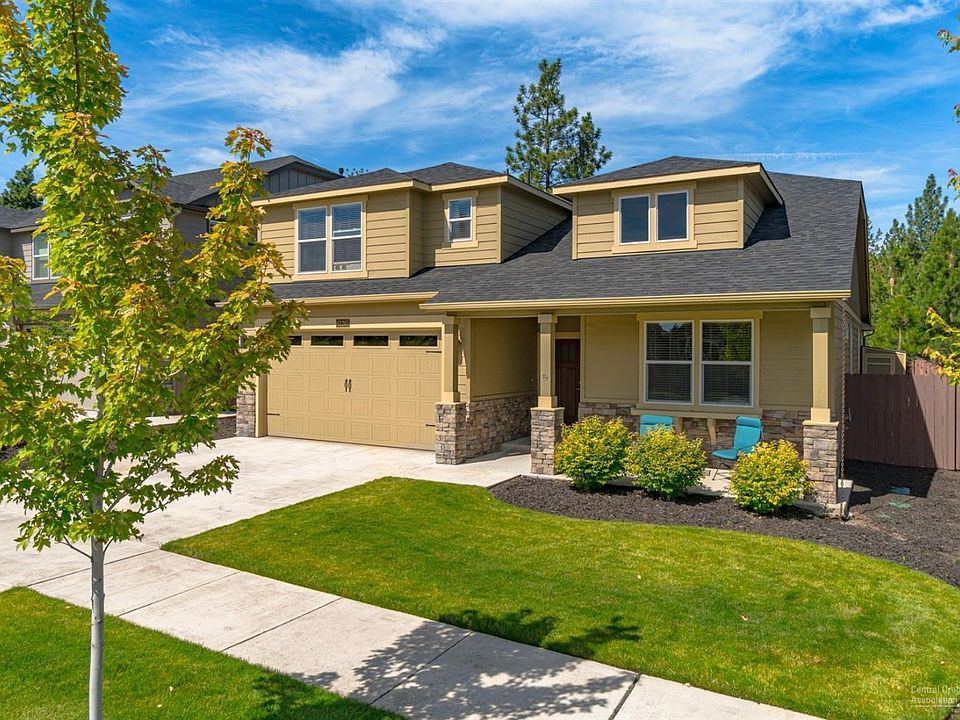Wonderful Hayden built home on a level .15 of an acre lot. Charming covered front porch with stone accents. Spacious & inviting great room floor plan with 4 solar tubes for increased natural light. Gas fireplace with dcor tile surround & wall mounted TV connection above. Beautiful Acacia hardwood floors throughout. Kitchen boasts upgraded stainless steel Electrolux appliances, dual fuel range with oven in drawer, VentAHood exhaust, Frigidaire Refrigerator, quartz countertops, large breakfast bar & walk-in pantry. Main level master with private access to back patio, walk-in closet, spacious master bath with walk-in shower & soaking tub with tile surround. Two more bedrooms and full bath on the main floor. Upstairs features spacious and private guest quarters with full bath. Fenced back yard with covered patio and 4x8 wooden garden shed. Close to shopping, the new North Star Elementary School, Bend Harvest Park, Riley Ranch park & river trails. Easy access to parkway North & South.