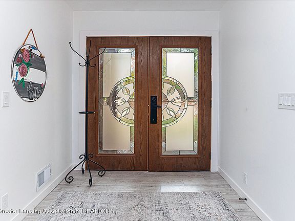 Modern Farmhouse Retreat on a Half-Acre Wooded Lot Completely renovated in timeless modern farmhouse style, this five-bedroom, three-bath residence offers both elegance and versatility. Luxury vinyl plank flooring flows throughout the open main level, featuring a spacious primary suite with a huge en-suite shower and walk-in closet. The entertaining-style layout connects a bright living room, dining area, and cozy den with fireplace, leading to a charming four-season room—also with its own fireplace and access to a brick patio overlooking the peaceful backyard. Upstairs, the second story functions as an apartment-style suite, ideal for guests or multigenerational living. It includes a family room with fireplace, wet bar, two large bedrooms, and a full bath. Up a few more steps, discover a private office or creative workspace, and from there, access an elevated deck with views of the scenic landscape. The fully finished basement adds even more flexibility, with a fitness room, workshop area, large laundry room, and guest bedroom. The two-car garage provides convenient entry directly into both the kitchen and basement. Set on a half-acre wooded lot that backs up to 100 acres of Meridian township-owned land with trails, this home offers privacy, space, and connection to nature—perfect for a large or multigenerational family, or as a rental-income opportunity with its independent upper-level suite. Enjoy the benefits of lower Meridian Township taxes, MSU sports, close to shopping / entertainment and East Lansing Schools. Exceptional Value — priced $15,000 below the last appraisal! This home truly has it all — space, style, and setting.