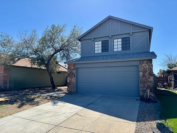Welcome to this stunning 3-bedroom, 2-bathroom home located in the vibrant city of Glendale, AZ. This property boasts a range of modern amenities, including brand new stainless steel appliances that will make your culinary adventures a delight. The home features new vinyl plank flooring, adding a touch of elegance and durability to the living spaces. The large covered patio is perfect for outdoor entertaining or simply enjoying the Arizona weather. The home has been freshly painted, both inside and out, with a neutral palette that will complement any decor. The upstairs area is newly carpeted, providing a cozy and comfortable space. The kitchen is a dream with its white cabinets, offering ample storage and a clean, contemporary look. Plus, enjoy the freedom of having no HOA restrictions or fees. This home is a perfect blend of style, comfort, and convenience. Don't miss out on this gem in Glendale, AZ!