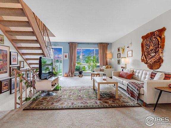 Situated on a quiet avenue in the French Quarter, this two bedroom, two bath condo charms and invites. The main level living area's western-facing picture windows look out onto Garland Park, so you can enjoy back range mountain views and manicured lawn without end right from your living space. The flow from the living room to the kitchen and dining area is seamless, with a 1/2 bath integrated into the main level. Walk out from the eat-in kitchen, with loads of built-in storage, onto your private and fenced back patio, perfect for pets, gardening and entertaining. On the upper level you'll find two generously sized bedrooms with ceiling fans, one full bathroom and a bonus/extra vanity. The fully finished lower level centers around your cozy wood burning fireplace, flanked by a wet bar. Adjacent to Cherry Creek Trail and Lollipop Lake, and moments to downtown, I-25, shopping and groceries. Central AC, two adjacent covered parking spots, and loads of storage make your new spot even sweeter.