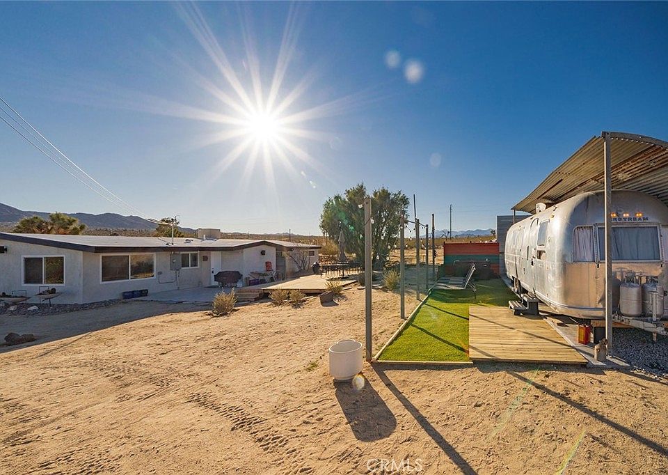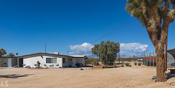 Check out the Indigo Haus--perched on sprawling acreage near the heart of Joshua Tree! This remarkable property strikes the perfect balance, offering a serene setting that feels miles away from the hustle and bustle while being conveniently close to town. Privacy is ensured by a secure fence with an automatic rolling gate offering peace-of-mind. This 3 bedroom, 2 bath home has generously proportioned spaces bathed in natural light. Aesthetic excellence and attention-to-detail is everywhere, from the striking concrete flooring to the spacious bedrooms with stunning spa-style bathrooms to the suspended steel duct venting that adds an industrial chic element to the decor. The open concept floor plan combines the kitchen, dining, and living areas, culminating in an ideal space for hosting gatherings and making cherished memories with friends and family. The stylish kitchen features custom cabinetry by woodwork designer Thomas Hayes. His work is a testament to precision and artistry, elevating the kitchen's functionality and style. Indulge in the art of living well with the separate-entrance yoga room; embrace the harmony between indoor comfort and outdoor serenity that the Indigo Haus offers. It's more than a home; it's a lifestyle--combining the beauty of design with the allure of Joshua Tree's mesmerizing surroundings. Furnishings--including handcrafted Thomas Hayes designer pieces and the Airstream trailer are available separately if interested. This is your opportunity to make the Indigo Haus your desert retreat. A place where the stunning natural landscape merges with timeless style and modern convenience. Don't miss the chance to experience this exceptional property for yourself. Visit the Indigo Haus today and unlock the door to your dreams. Priced to sell, come see!