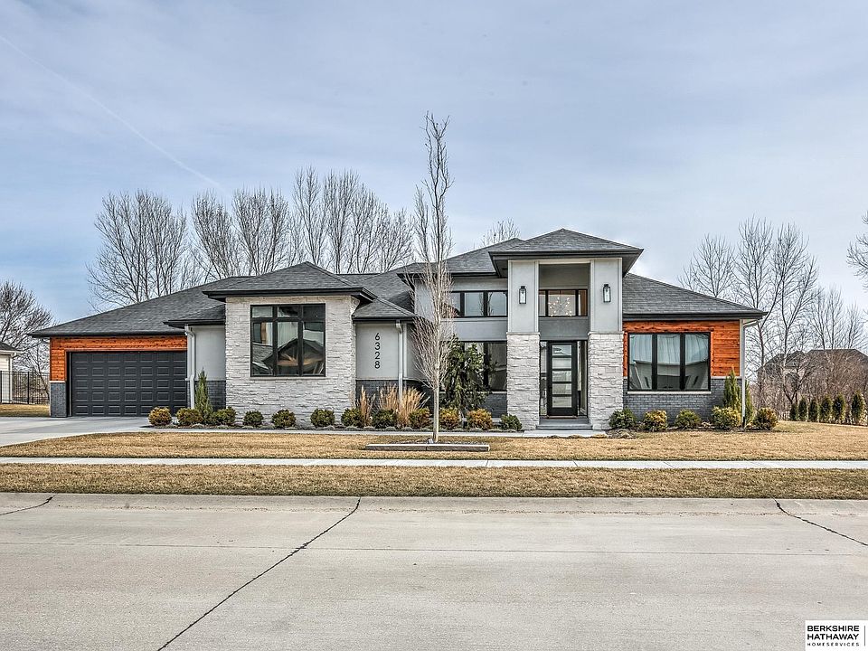 Welcome to the exclusive Bluewater neighborhood - with nearly 250 acres of pristine water, over seven miles of pure sand beaches and average lake depths exceeding 40 feet. This corner lot, modern off-lake home backs to trees and is adjacent to an out lot making the half acre lot feel like 5 acres! This home comes with a covered slip and electric boat lift that the purchaser owns in the marina. You will enjoy all of the lake activities without all the sand in your home or beach to maintain. Some of the MANY features include an amazing primary suite with large wardrobe closet, walk in tile shower and heated tile floor in bathroom. Remote control window coverings in main area, 10 ft ceilings throughout the home, 13ft in great room, 11ft in primary bedroom, and 13 ft in office. Recent upgrades include professional epoxy flooring, a level 2 EV charger, and Hello Garage storage in the 5 car garage as well as professional year around roofline lighting! Move in just in time for the holidays!
