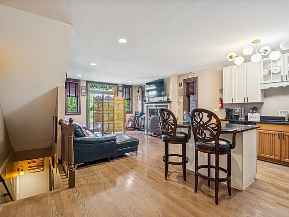 Welcome to spacious and beautifully updated 5-bedroom, 3-bath duplex-down in Hyde Park Township, just minutes from the train and the future Obama Presidential Center. This home combines modern comfort with incredible flexibility - perfect for homeowners and investors alike. Main level features refinished hardwood floors (2024), fresh paint throughout, and a bright, open concept living space. A sun-filled living room with fireplace and Juliet balcony flows into the updated kitchen, featuring granite countertops, custom cabinetry, breakfast bar, and newer stainless-steel appliances (fridge & dishwasher 2024). Three spacious bedrooms are on the main level, including a primary suite with spa-like bath complete with dual vanity, jacuzzi tub, and separate shower. From here, step out to a quiet private terrace and enjoy the convenience of your own assigned parking space. The lower level expands the possibilities. Fully tiled, it offers a huge recreation room with wet bar, two additional bedrooms, and a full bath with dual sinks, soaker tub, and separate shower. Best of all, this level includes a second kitchen (cooktop & fridge 2024), washer/dryer, and a private entrance - making it ideal for extended family, a guest suite, or as a turn-key rental/Airbnb opportunity.