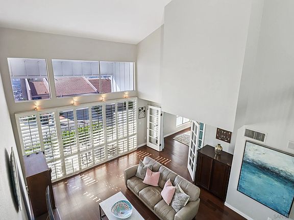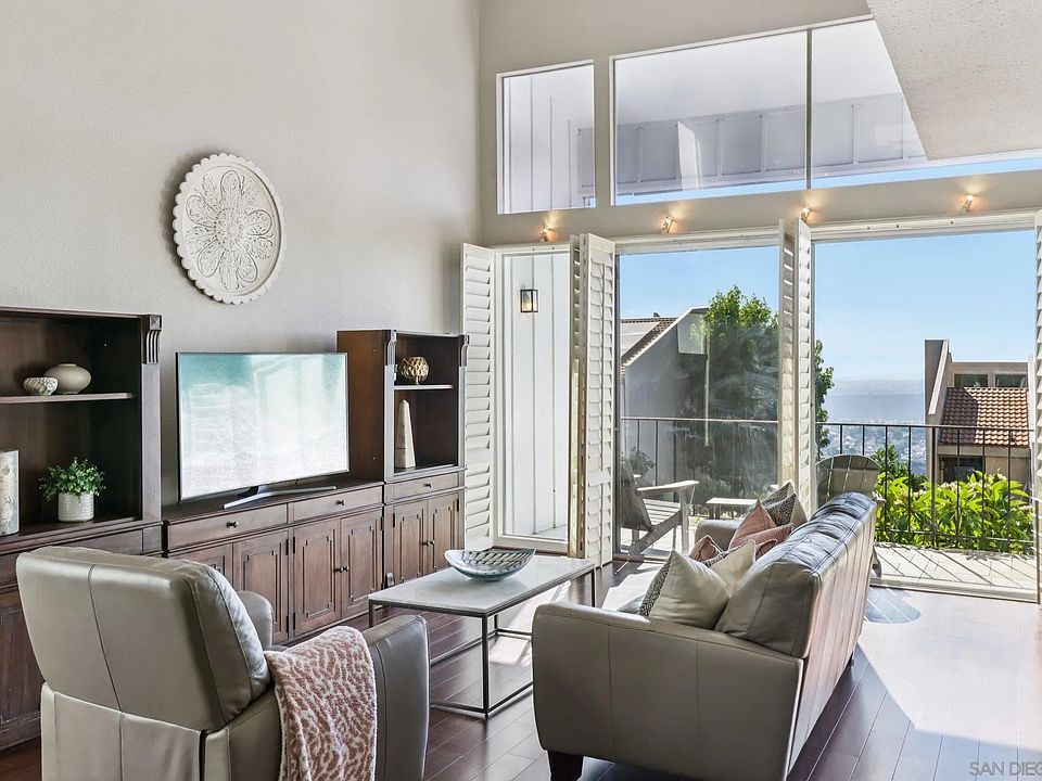 Nestled within the highly desirable gated community of Del Cerro Heights, this stunning home offers an unparalleled blend of comfort, style, and convenience. Step inside an open-concept living space where huge windows frame sunset and panoramic city views from the upper level, providing a breathtaking backdrop for both quiet relaxation and lively entertaining. The main level boasts distinct formal living and dining areas, and a private office/den with a cozy fireplace. A balcony adjoins the living room, perfect for taking in the views. The spacious kitchen is a chef's delight, featuring ample cabinet and countertop space. You'll find three generously sized bedrooms, including a serene primary suite with panoramic views and a large, completely remodeled bath offering dual sinks and a soaking tub. An updated guest bath completes the interior. Extending your living space outdoors is a private, low-maintenance patio, ideal for enjoying the beautiful San Diego weather. This home also includes a two-car garage with ample storage, plus an extra bonus storage room. Beyond your doorstep, the Del Cerro Heights community provides an array of top-notch amenities. Stay active with an Olympic-sized heated pool, tennis courts, and a well-equipped gym. Socialize at the clubhouse or enjoy family time at the park and playground. The prime location offers easy access to outdoor adventures at Lake Murray, Cowles Mountain, and the Mission Trails Golf Course. San Diego State University and Grossmont College are just minutes away. This Del Cerro Heights gem offers the best of San Diego living!