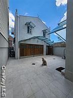 Backyard with private driveway, Italian tile flooring, and two drains