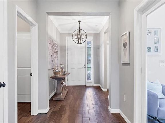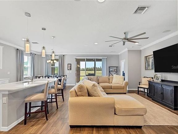 - Interior Features: Ceiling Fans(s), Eating Space In Kitchen, High Ceiling(s), Open Floorplan, Walk-In Closet(s), Crown Molding, Solid Wood Cabinets, Solid Surface Counters, Built in Features, In Wall Pest System, Tray Ceiling(s)