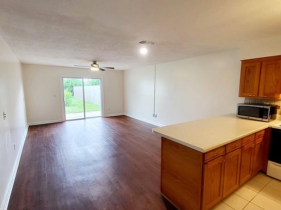 This spacious 3-bedroom, 2-bath duplex in Callaway offers comfort, convenience, and great value. Featuring a large living room with cathedral ceilings and a sliding glass door leading to the backyard, the home feels bright and open. The kitchen has been updated with a ceramic tile backsplash, resurfaced cabinets, and a breakfast bar that connects to the living area—perfect for family gatherings or casual meals.