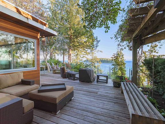 OPEN HOUSE this Sunday, April 23rd from 12 to 2pm! A rare offering on the Sunshine Coast—this architecturally refined waterfront estate captures sweeping views of the Georgia Strait & Trail Islands. Meticulously reimagined, the residence blends modern West Coast elegance with timeless natural elements—featuring seamless indoor-outdoor living with folding glass NanaWalls opening to the ocean views, old-growth fir floors, heated spa-style bathroom, and a wood-burning fireplace. Step onto the expansive ocean-view deck with hot tub, or retreat to the elevated artist studio perched above a new garage, boasting its own private balcony and panoramic vistas. Beach access and a charming seaside bunkie complete this truly exceptional coastal sanctuary. OPEN HOUSE Sunday, Nov 23 12-2pm