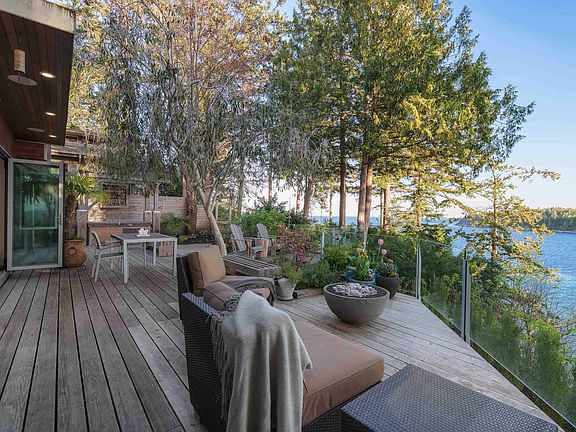 Waterfront estateModern west coast eleganceTimeless natural elementsNana wallsOld-growth fir floorsHeated spa-style bathroomWood-burning fireplace