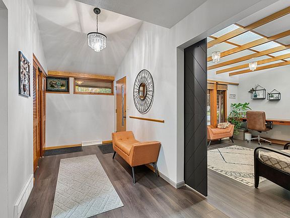 Discover the epitome of mid-century modern. With just under 4,000 finished sq ft and a layout perfect for everyday living and entertaining this home has it all. Inside, you’ll find 4 bedrooms, 4 bathrooms, a spacious dining room, cheerful breakfast nook, an office with a custom barn door. Featuring main floor laundry and primary bedroom suite. South-facing windows flood the home with natural light, while the uniquely vaulted ceilings add character. The lower-level family and entertainment rooms offer even more space to gather. Outdoors, enjoy an inviting screened porch leading out to the patio, a fully fenced expansive backyard, a 10x12 storage shed and newer shingles. The oversized heated 3-stall garage features new energy-efficient doors providing peace of mind. Make this one-of-a-kind custom-built home yours today!