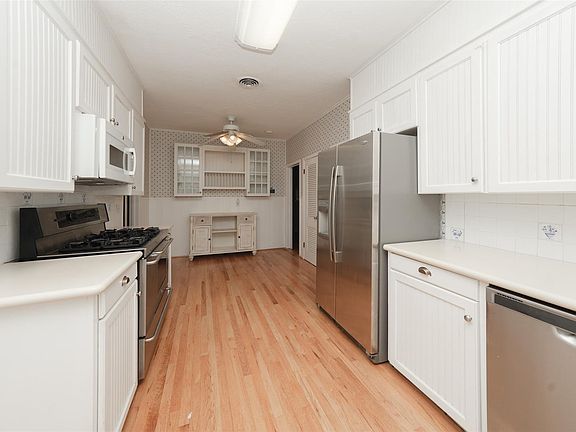 This could be your show-stopper property! If you love nature, history & room to move around - this is IT! Built in 1940 by Hempstead's 1st resident Dr., Sydney Walker. All of the outside trim and massive chimney are constructed using petrified wood. Generously sized rooms! The bonus room off the kitchen is cozy & is easily used as a 2nd living room &/or a guestroom. 3.5 lots make up this property with mature oaks Cottage garden style, the bedding areas are TX Natives that need help from unruliness but very minimal care with watering. Please see photos for the outlined area in the survey for this property. In 2023, the utility room was relocated to inside the home & 2024 all water lines were replaced using PEX.
