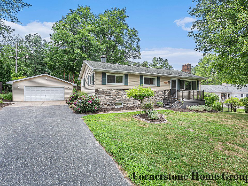 Beautifully updated Ranch located in Award-Winning Forest Hills School District, just minutes from Downtown Ada and I-96. Situated on nearly one Acre of Wooded land, this 3 bedroom, 2 full bath home offers many updates including Maple Cabinetry in the kitchen, Marbled Solid Surface Countertops, Tile Backsplash, Stainless Steel Appliances, and Newer Light Fixtures and Hardware. Living Room includes large Picture Window which brings in tons of Natural Light, Brick Living room-Gas Fireplace and Hardwood Flooring. All three bedrooms and Updated Full Bath complete main level. The lower level Walkout offers additional Family Room w/ French Doors leading to Patio, Bonus/Flex space, second Full Updated Bathroom, and plenty of Storage Space. Large Fenced Backyard with Mature Trees.
