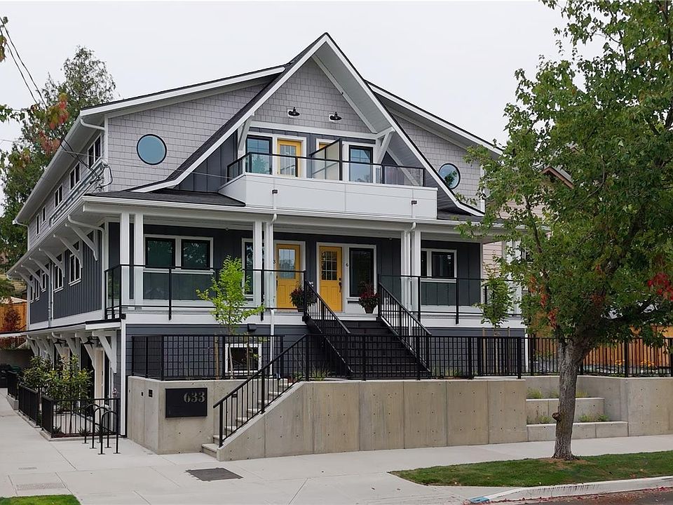 *Special Offer,with the your purchase, get a $12,000 bike credit towards the purchase of a new bike at Bishop's Family Cycles.This beautifully designed 3-bedroom,2-bath townhome offers the perfect blend of modern style & sustainable living.This top-floor unit is flooded with natural light & features a charming front porch perched above the treetops! Inside,you’ll find high-quality finishes throughout,including engineered white oak flooring,a Samsung heat pump, heated floors in the primary ensuite,& a cozy electric fireplace.Expansive windows bring in an abundance of light & vaulted ceilings create a warm & inviting atmosphere.Tucked away on a quiet, tree-lined no-through street in Vic West, you’re just minutes from the area’s best coffee shops,parks,the Galloping Goose Trail.Premium amenities include a best-in-class bike garage with space for cargo bikes,plus access to a shared electric vehicle.