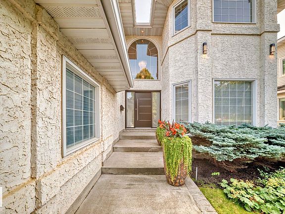 Dream location with 3 levels of large south-facing windows backing onto a beautiful park-like setting with ravine trails & quick access to Whitemud & Terwillegar Dr. This stunning 2-storey with walkout basement features soaring 18’ ceilings in the great room, oversized windows & an open-concept layout perfect for entertaining. Kitchen includes premium Bosch fridge, bar fridge, coffee station, oven, microwave & dishwasher, plus a spacious eating area beside patio doors opening onto a large glass-enclosed deck. Main floor also offers a formal dining room & office. Upstairs features the luxurious master suite overlooking the park, spa-like ensuite with freestanding tub, extra-large vanity & separate shower, plus 2 extra bedrooms & music/library space. Walkout basement includes a full-width family room with views of the fenced yard & the park, a bedroom, bathroom & food-prep area. This non-smoking, pet-free & exceptionally maintained home offers privacy, elegance & easy downtown access in an ideal location.
