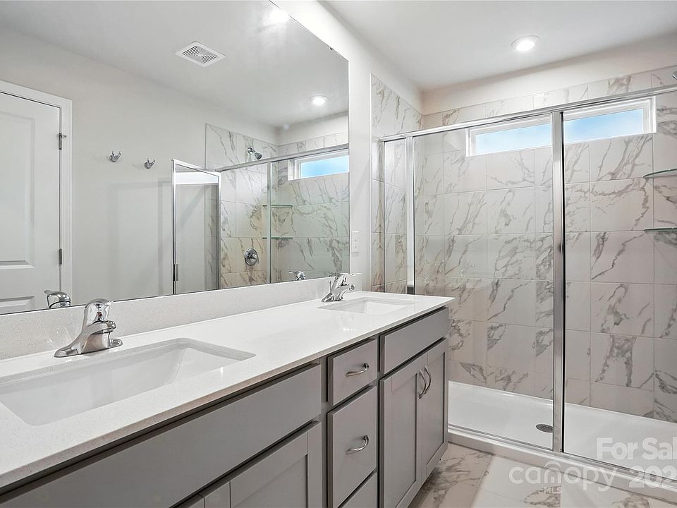 Upstairs, a large loft offers flexible living space. The owner's suite is a true sanctuary with a walk-in closet and an en-suite bath featuring a shower with seat and dual vanity. Two additional bedrooms, a full-size bathroom, linen closet, and laundry room complete the second floor.