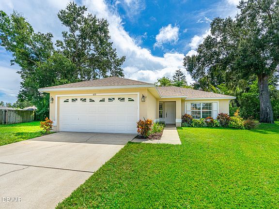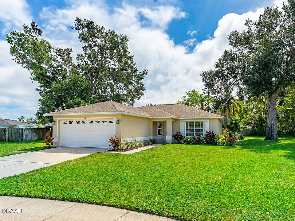 Welcome to this charming 3 bed, 2 bath ranch style home on a cul de sac at the back of Coventry Forest! This property boasts a 2020 roof and has remained HIGH & DRY during the major rain events of the past few years. The covered entry opens to the kitchen, great room and primary suite on the left, guest bedrooms and bath to the right. The split plan accommodates both time together and privacy at the end of the day. Enjoy a peaceful cup of coffee as you walk through the sliding glass doors onto your covered, screened lanai for bug-free relaxation. The separate well for irrigation ensures lush, green surroundings. Conveniently located between Beville and Dunlawton Roads, Ridgewood and Nova. Come see this little slice of paradise offered at a very attractive price!