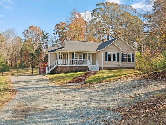 Welcome HOME! This charming home is nestled on 3.72 acres, surrounded by mature trees in a beautiful setting! One level floor plan offers 3 bedrooms, two full bathrooms, 1293 sqft with an open concept of the living and dining room area. This home features hardwood floors throughout living areas with front and back porch areas overlooking the spacious lot with partial fencing. Minutes from all downtown Mebane has to offer while convenient to HWY 119 Bypass and I40. Rural living with convenience, this one has it ALL!