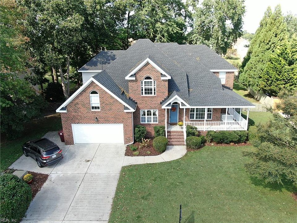 * All-brick 6BR/3BA home in Etheridge Lakes * Wraparound porch w/ swing * Dining room w/ hardwood, crown & chair rail * 1st-floor BR w/ built-ins * Kitchen: granite, island w/ seating, backsplash, Italian tile, 2 walk-in pantries * Family room: gas fireplace, built-ins, Pergo floors * Bright sunroom w/ water views * Breakfast nook off the kitchen * Primary suite: recessed ceiling, oversized WIC, jetted tub, shower, dual sinks * Spacious secondary BRs + FROG w/ storage * Crown molding throughout * Waterfront lot in desirable Chesapeake location * Hickory Schools * Newer Roof and Soffit * De-humidifier in Crawl * Storage Galor