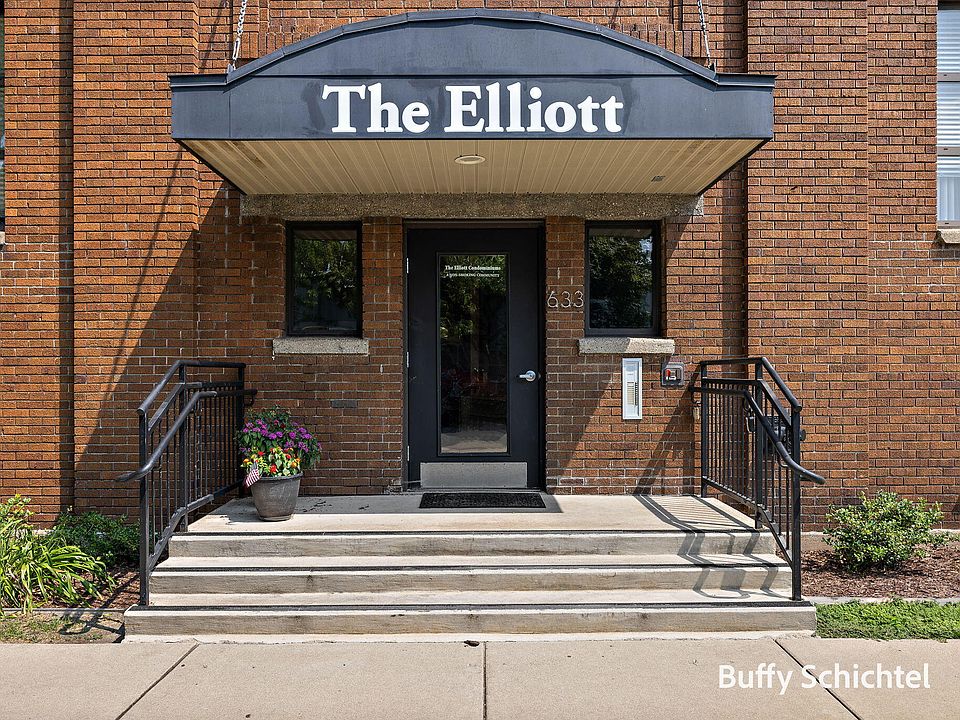 Updated 2-Bed 1-Bath Condo in The Elliott Building! Embrace the architectural beauty of this top-floor, corner unit condo featuring large windows, soaring ceilings, exposed brick, and beams. The open-concept living space is accented by granite counters in the renovated kitchen, complete with stainless steel appliances. Both bedrooms offer ample closet space, and the unit boasts new flooring, faucet and new garbage disposal. Enjoy access to a shared patio and grill, as well as on-site laundry facilities included in the association dues. Ideally situated just minutes from downtown Grand Haven, the harbor, beaches, and shops, this unit also has a deeded parking space.HOA fee is $650 quarterly water,sewer, trash,fire sprinkler system,snow plowing, external building & grounds care.Pet Friendly