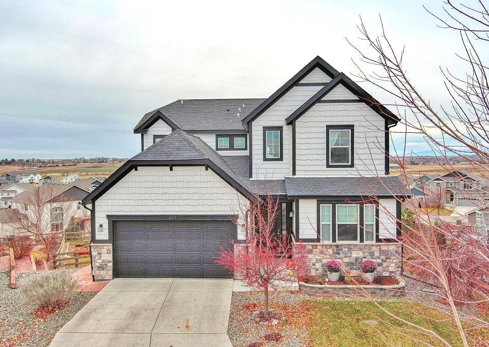 Discover your dream home in the picturesque town of Berthoud, CO with amazing mountain views from the decks! This stunning 3,258 square foot residence, built in 2018, combines modern elegance with the serenity of nature. With five spacious bedrooms, and an office, and fout well-appointed bathrooms, this home offers ample space for comfort and relaxation. The open-concept design seamlessly connects the living, dining, and kitchen areas, creating a welcoming atmosphere perfect for entertaining or unwinding after a long day.