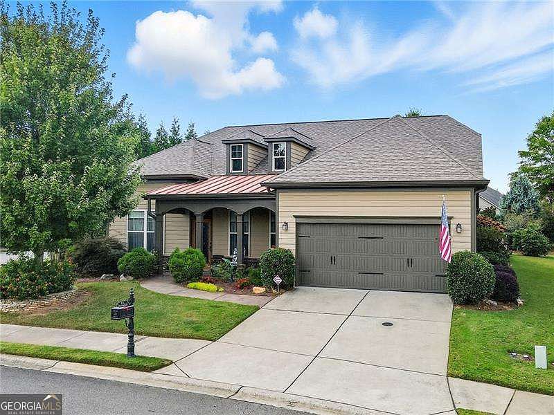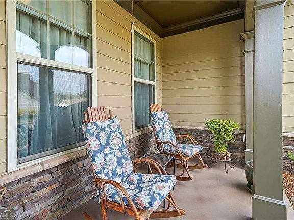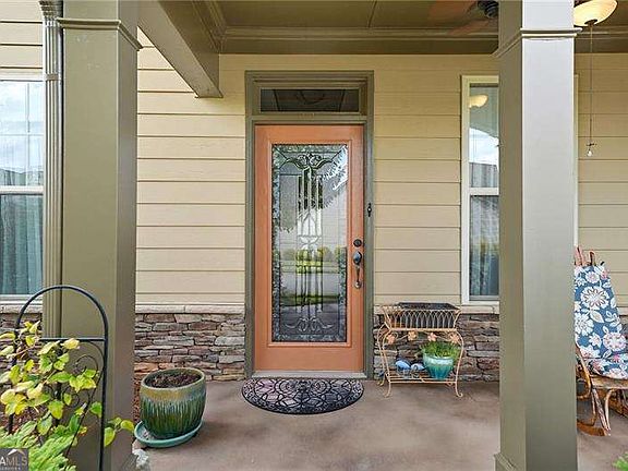 This desirable Preston floorplan sits on a well-landscaped corner lot and offers 3 bedrooms, 3 full baths, an extended garage, butler's pantry, technology center, enclosed porch, and covered patio. The deluxe kitchen features upgraded off-white cabinets, premium stainless-steel appliances, a double wide stainless-steel sink, subway backsplash, and a large walk-in pantry. Main living areas have elegant wide plank wood flooring, 11-foot ceilings, crown molding, extra-wide baseboards, and trey ceilings. The spacious family room boasts a dramatic floor to ceiling stacked stone fireplace, while the master suite includes bay windows, sitting area, dual vanities, frameless walk-in shower, and a large walk-in closet. Additional features include ceiling fans throughout. The home is in Soleil, the premier active adult neighborhood in Georgia. Soleil is located on over 500 acres in the hills just north of Downtown Canton with indoor and outdoor pools, tennis courts, pickleball courts, a tennis center with a full-time pro, a garden area, a greenhouse, and walking trails. The 30,000 square foot clubhouse has a large ballroom, billiard room, card rooms, a craft room, meeting rooms, a large kitchen, a workout room with machines, an exercise room, indoor pool and changing rooms. Soleil has a full-time activity director and over 50 clubs to keep residents busy.