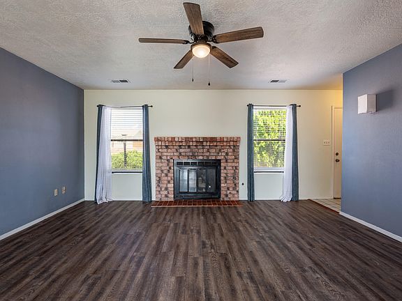 Charming single-level 3 bed, 2 bath home on a spacious corner lot in Rio Rancho! This home features a pitched roof, cozy fireplace, walk-in primary closet, and durable LVT flooring. The kitchen has a quaint, functional layout with pantry and plenty of potential. Interior needs some TLC, but there's great storage throughout. Outside, enjoy a large grassy yard and mature trees with a swing set, dog run, and beautiful mountain views--perfect for relaxing or entertaining. This bright and cheery home is ready to go. Schedule a showing today.