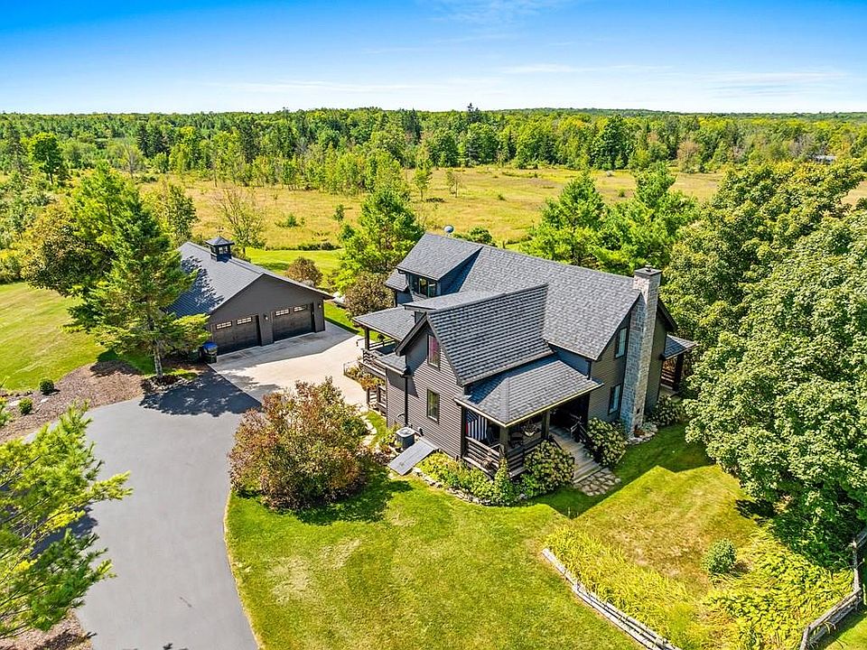 A level of craftsmanship one rarely sees. Completely remodeled in 2020/2021, this Door County home with 2 bedrooms and a large office also offers a guesthouse with 1 bedroom, 1 bath and sleeping loft, a 2-car heated garage w/ workshop & "sleepover" bunk room, a separate, plumbed studio building and even a sauna. There is serenity and simplicity, with the serene atmosphere of life in the country (while Ellison Bay is 7 minutes by car, Sister Bay 15 minutes) . Door County memories will be made of bonfires, swimming in Europe Lake and hikes at Newport. Hardwood floors, exceptional custom woodwork throughout, plus gardens and the exquisite dark, starry skies of northern Door. Bed/Bath count includes guesthouse. Call for your tour today.