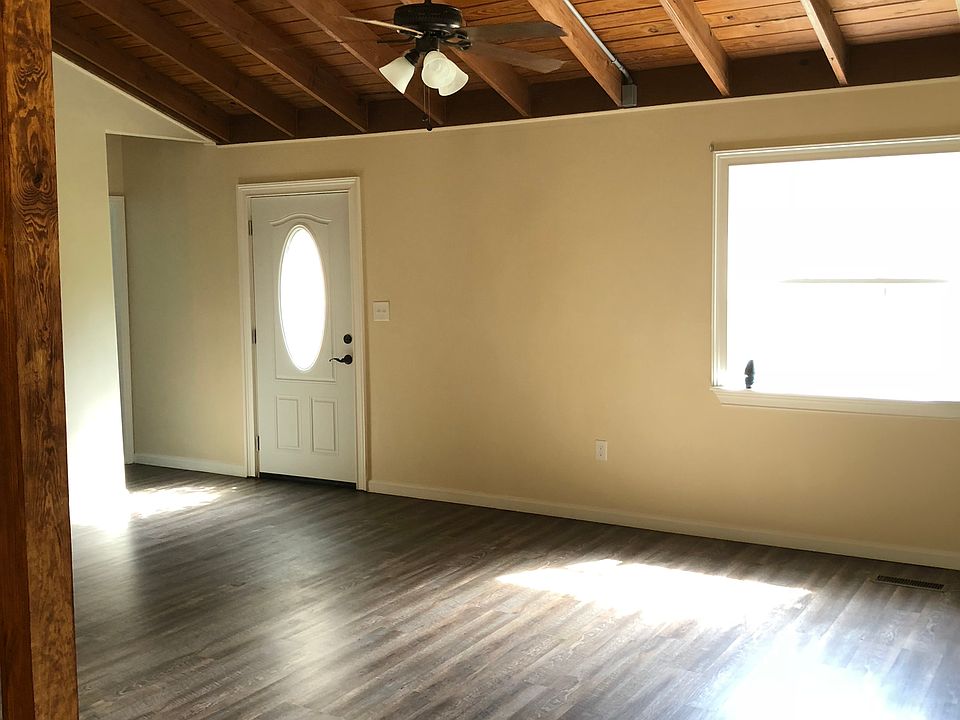 Two story house located at the end of a dirt road. LVP flooring throughout, living room has vaulted ceiling, most all rooms have ceiling fans and tons of natural lighting. Two bedrooms upstairs share a bathroom and two on-suites downstairs. Property features a carport and large yard. Georgia Power & city water 1 year lease $25 application fee Inside pets only with fee Favorable rental reference, 3x rent verified income, no evictions, and background check are among minimum requirements. Text 444*2566 for more information