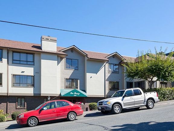 Great top flr NW corner unit w/ wonderful Snd, Mtn& Strait views! Quiet, off st setting w/ alley tjat gives access to common garage w/ 2 conv prking spaces w/lrge storage unit behind. Elevator close by. Homelike setting w/formal entry that invites you right to those views! View windows galore. Enclosed deck acts as great view retreat. Recent pint, carpet, light fixtures and more make for fresh , comfortable feel! Located short 1 1/2 blks to 5th & Main/the Fountain....Your search has ended!