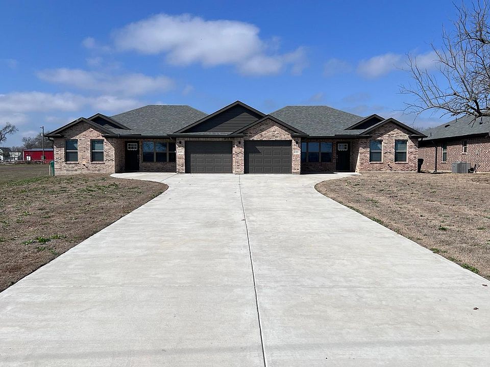 Brand new spacious Duplex one story positioned on 1 acre homesite in well established area of Sherman. Featuring a 2 car tandem garage with garage door in back and front. Flat work in back for boat or small trailer storage. Luxury vinyl plank flooring through out. Granite kitchen counter tops, tile back splash, under cabinet lighting, stainless steel appliances, Refrigerator, Energy efficient spray foam insulation, large fenced in backyard, outdoor security lighting. Covered front and back porches. The only shared wall is garage. Quick access to highway 56 and highway 1417. Located close to Texas Instruments, Globitech, Austin College and lake Texoma.