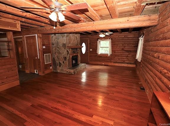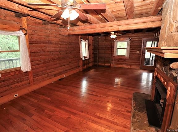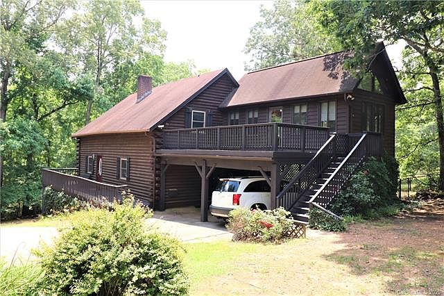 LOG HOME on wooded 1.15 acre double lot. Enjoy a quiet retreat setting every day. This log home provides plenty of room inside with 3 bedrooms, 3 full baths, an office/study, plus a sun-room with a large deck overlooking the wooded lot. The master bedroom/bath can be downstairs or upstairs. The large stone fireplace with gas logs accents the living area and provides a cozy atmosphere. The wrap-around porch leads to a screened porch that can also be accessed through the house. The fenced side yard provides a safe place for children and pets. There are 2 wired outbuildings, one has shelving for great storage, the other would make a great shop.