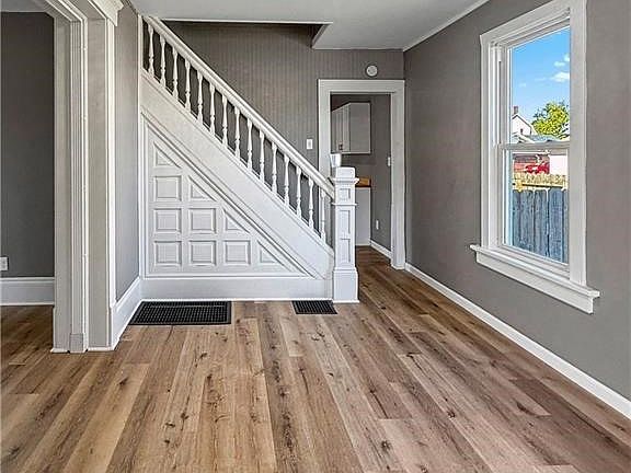 Absolutely stunning colonial home with completely renovated from top to bottom interior. 1,466 sq. ft. includes breezeway entry showcasing brand new windows to let lots of light gleam in! Living room includes new flooring. new windows and chic light fixtures/fans. Oversized kitchen w, laundry, formal dining area (once used as main floor bedroom) and full bathroom on main level. The second floor has three ample sized bedrooms & full bath with cute mirror and vanity. Easy walk-up attic/storage, full, divided basement, gas furnace. Backyard is fully fenced with concrete parking that leads to alley access, utility barn/Converted from garage (May be able to convert back). 51' x 130' larger sized lot. Closest thing you will get to a new build in this fantastic price point! Close to schools and shopping.