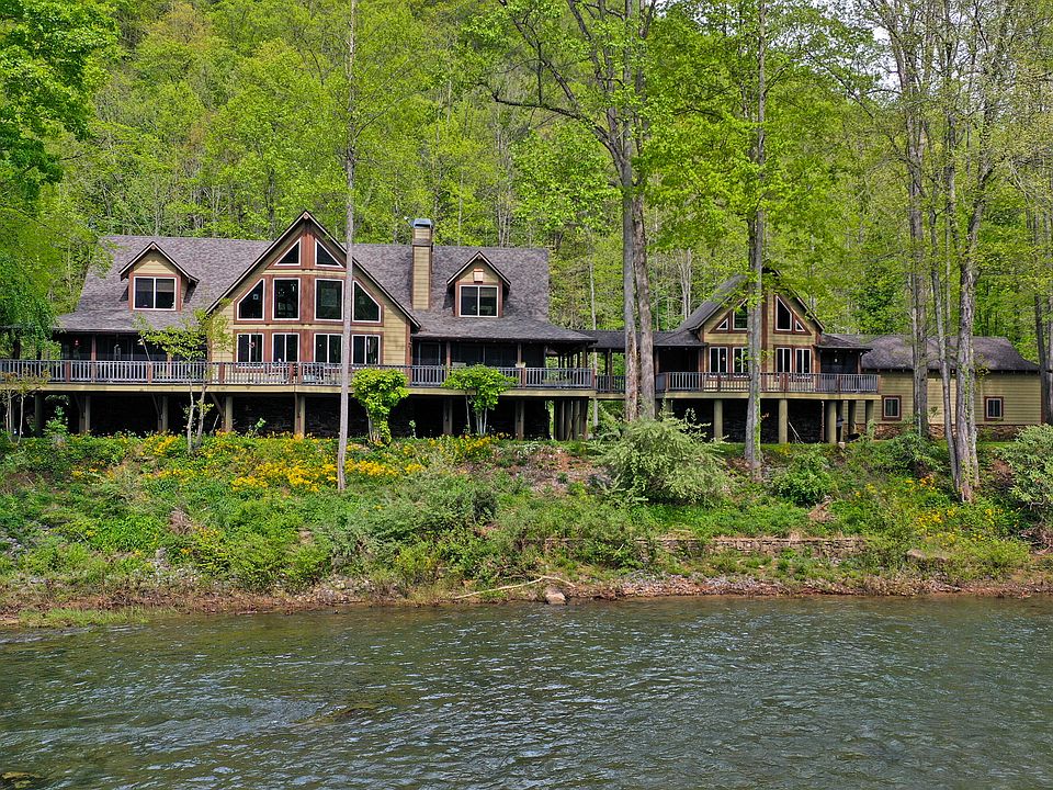 Serenity on the River: Elegant 5-bedroom, 4-bath, 3-garage riverfront luxury home with guest wing. 500 feet of Greenbrier River frontage with panoramic 180 views.This magnificent riverfront home has everything, including a hot tub and sauna. Situated on gated property with ready access to the Greenbrier River Trail, this secluded home occupies its own natural wonderland with elevated views and winding stone pathways. Its many appealing features include impressive cathedral ceilings, extensive wraparound decking, a gourmet kitchen and a spacious RV garage. Twenty minutes from downtown Lewisburg, accessed via U.S. 219 and a picturesque country lane, this idyllic riverfront home is a rare find. Much more than a weekend retreat, this spacious, well-built luxury home is an ideal year-round residence offering privacy in a serene setting, surrounded by beautifully landscaped grounds, untouched woodlands for over a half-mile on three sides, and the relaxing sounds of the flowing river.