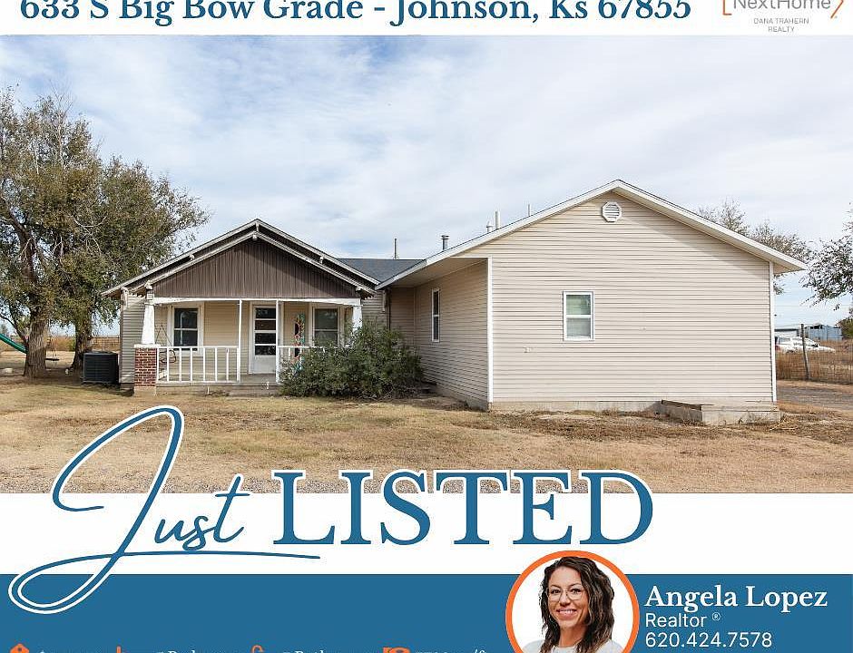 Imagine waking up in the peaceful Kansas countryside, coffee in hand, watching the sunrise stretch across your land while your animals start their day. Just 10 miles from Ulysses, this cozy 5-bedroom, 3-bath home offers 3,700 sq ft with an inviting open layout, an eat-in kitchen, a warm living room, and a formal dining room perfect for gatherings. The original 1950 home blends beautifully with a spacious 2016 addition. With nearly 4 acres there's plenty of room for horses, cattle, or 4-H animals plus a barn to keep them out of the elements. Enjoy quiet country living, and the convenience of being close to town. In the evenings, relax on the porch and watch those unforgettable Southwest Kansas sunsets settle over your acreage. This is cozy country living at its best. Call Angela Lopez @ for a showing.